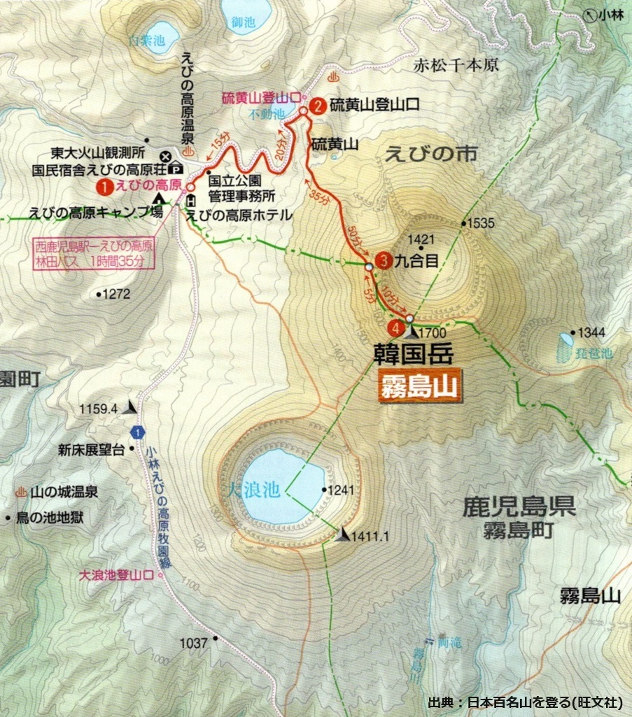 | (3)草加駅7:15~8:24羽田空港9:30~ANA621便~11:20鹿児島空港~Nippon rental Car(鹿児島空港)22:00~市内でビジネス講習会実施~国道504号~県道457号~県道60号~県道104号~県道1号~18:00国民宿舎えびの高原荘(走行距離65.5Km) (4)霧島山(韓国岳) ※韓国岳コース 登山口標高1,180m 標高差520m 国民宿舎えびの高原荘6:00~韓国岳登山口 6:30~6:45硫黄山登山口~7:25九合目~7:35霧島山(山頂)8:00~8:05九合目~8:30硫黄山登山口~8:40韓国岳登山口9:15~県道1号~国道223号~県道56号~国道504号~11:00 Nippon rental Car(鹿児島空港) (走行距離40.1Km)(総走行距離105.6Km) 鹿児島空港16:45~ANA628便~18:20羽田空港19:15~20:25草加 |