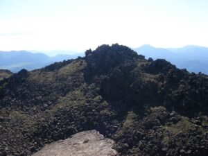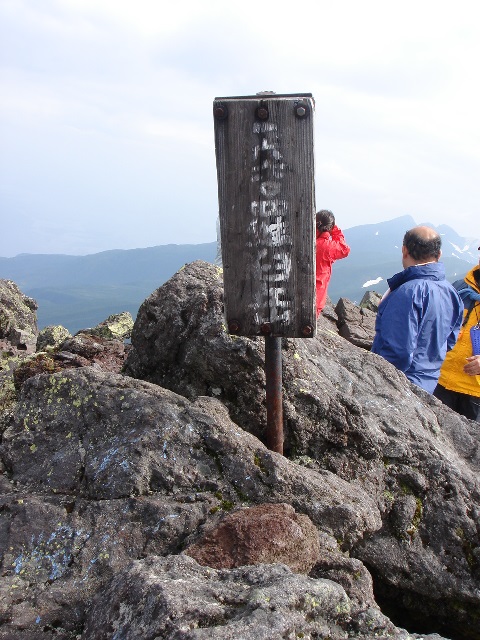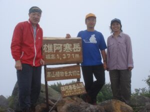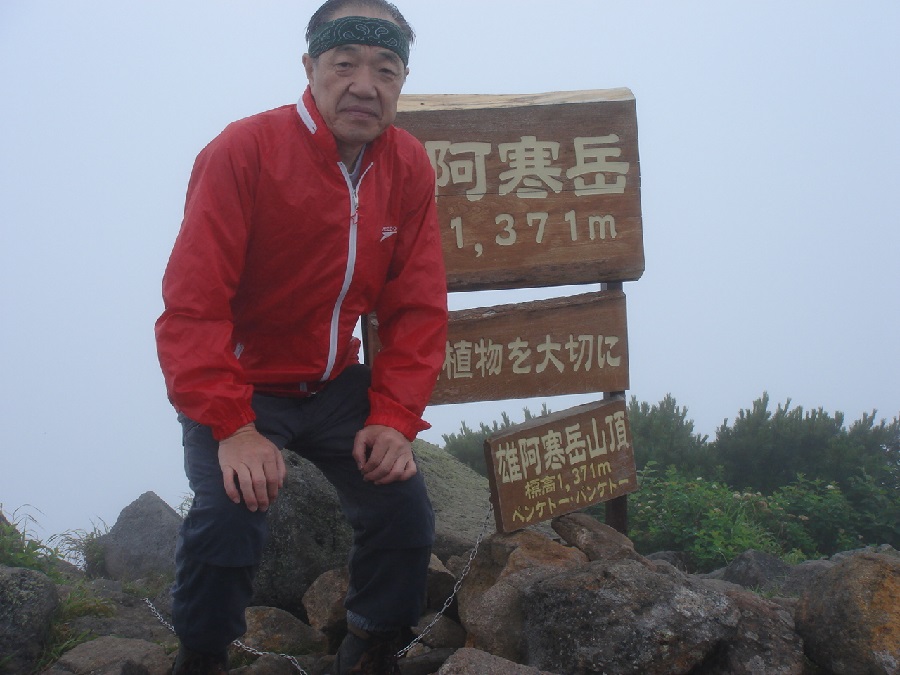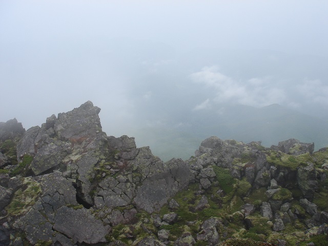 山頂は岩場でした。又、ガスっていて本来遠くに見えるはずの雌阿寒岳などが拝めず残念!!