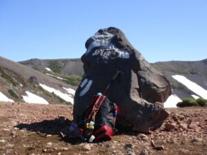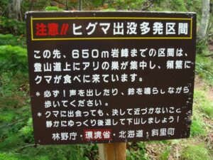 | 車中泊起床5:00奥幌尻橋(登山口)5:30~7:00ダム取水口~9:15幌尻山荘 10:00~11:10命の泉~12:55幌尻岳(山頂)13:20~命の泉14:15~15:00 幌尻山荘(宿泊) |