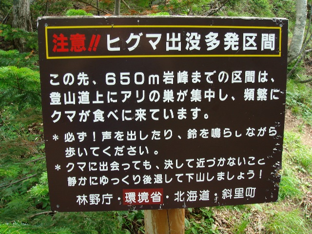 早朝2:30起床、「旅館なりた」を3:15出発、標高差220m登り車道を黙々と3.2Km歩き3:45登山口(北麓野営場)出て途中、甘露泉水でペッドボトルに満タンにし、いざ頂上目指す。トドマツの森林一本道を途中から岩ゴロゴロだんだん道は険しくなるも一気に長官山到達。昨夜、旅館で用意して頂いた弁当で朝食と休憩を兼ね済ませる。