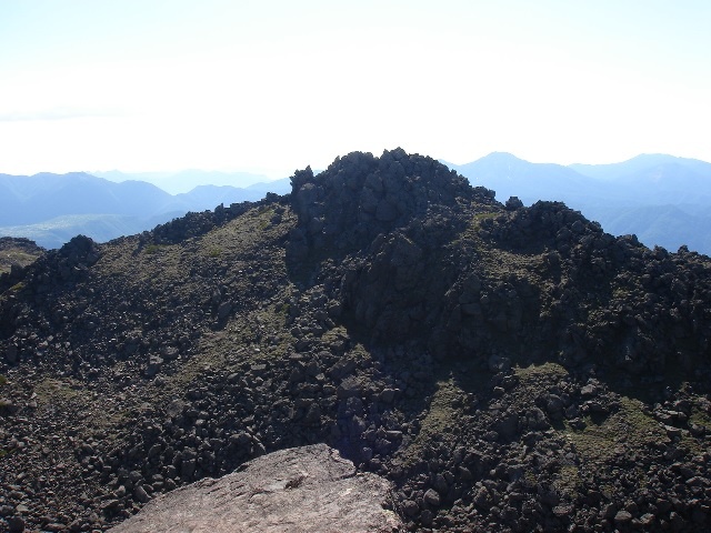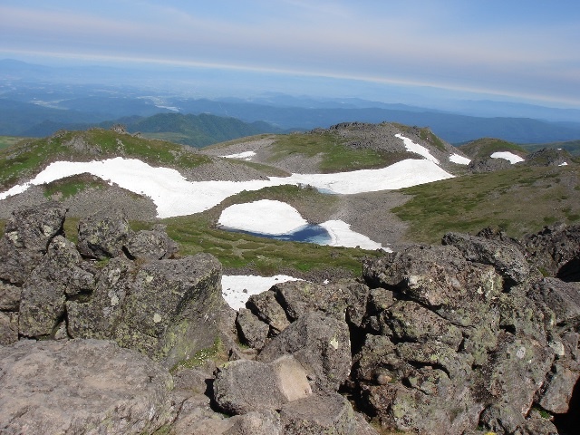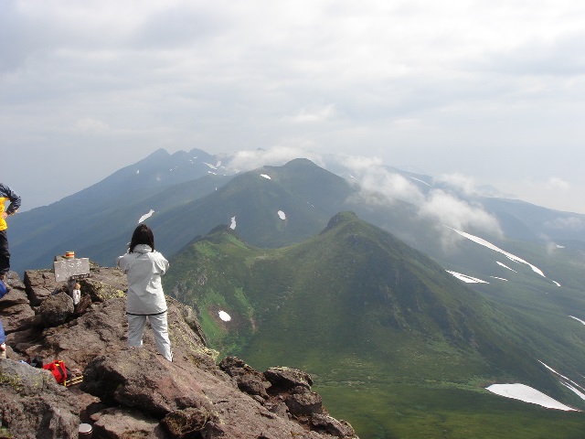 山頂は、畳一枚もある様な大きな石が幾つも積み重なっていた。山頂からは大雪山系の山々を見ることが出来素晴らしい景色でした。