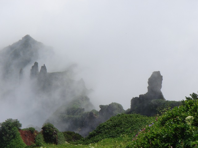 本来なら山頂からの展望は、オホーツク海と太平洋側の国後島が望め、真ん中の知床半島の羅臼岳も見渡せるとの事。残念ながら濃霧に阻まれ何も見えませんでした。