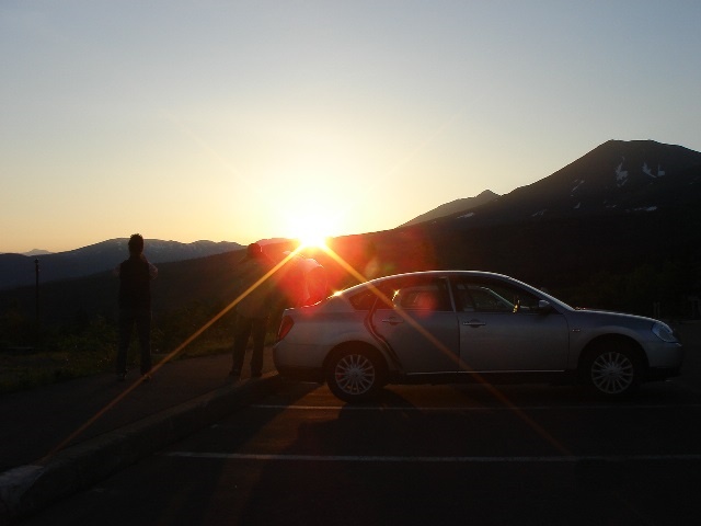 稚内駅傍の「ニッポンレンターカー」で「ランサー」を借り、次の「斜里岳」登山口清岳荘へ向け出発。国道238号~国道239号を経由し途中、紋別で夕食と休憩を兼ね済ませ、ひたすら夜道、国道239号南下道道857号を経由、00:30 411.1Kmドライブし清岳荘駐車場無事到着。(清岳荘駐車場で車中伯)