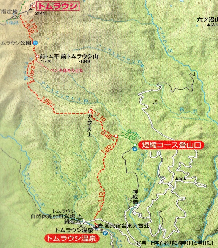 | トムラウシ登頂後、トムラウシ温泉(国民宿舎東大雪荘)14:45~22:15奥幌尻橋(車中泊) |
