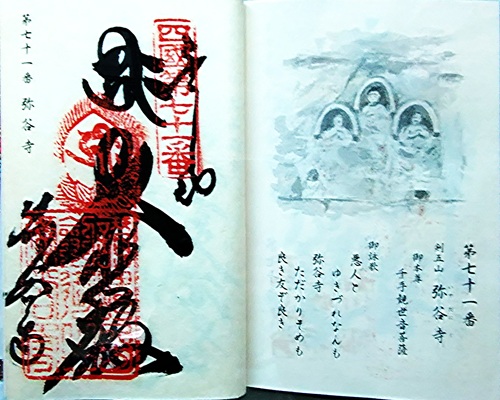 | 第70番本山寺10:55~徒歩~12:05三豊市役所12:25~13:40第71番弥谷寺 【 11.3Km 145分 16,800歩 】 第71番弥谷寺14:15~徒歩~14:35いやだに温泉 【 1.0Km 20分 1,350歩 】 いやだに温泉16:30~タクシー~16:45詫間17:51~JR予讃線~18:38高松駅21:05~JR四国バス・ドリーム高松2号~7:41東京駅八重洲口BT (26) 東京駅8:00~8:41草加駅8:45~バス~9:05北谷二丁目~徒歩~9:10自宅 |
