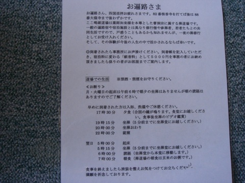 | 第81番白峰寺13:55~徒歩~15:20第82番根香寺 【 5.0Km 85分 8,161歩 】 第82番根香寺15:50~徒歩~16:10禅喝破道場(宿泊) 【 1.1Km 20分 1,815歩 】 |