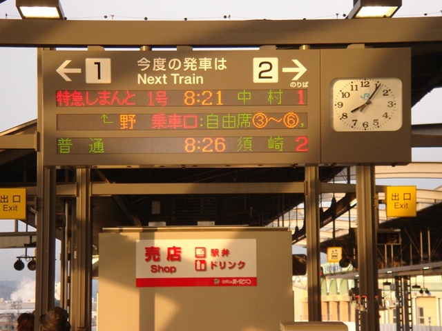 | (21) 宿毛駅10:37~土佐くろしお鉄道~11:08中村駅11:11~JR土讃線(特急「南風」)~13:05高知駅17:05~17:20ぽかぽか温泉(入浴)18:45~タクシー~19:00高知駅19:40 ~JR四国バス・ドリーム高知号 ~6:59東京駅八重洲口BT (22) 東京駅7:21~8:02草加駅8:15~バス~8:35北谷二丁目~徒歩~8:40自宅 |